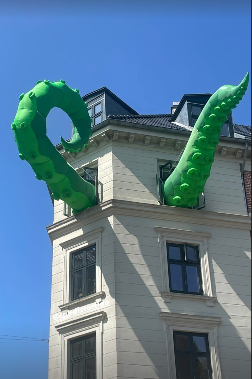 Til Distortion 2023 holdte vi os ikke tilbage, og vi havde både oppustlige grønne tentakler hængende ud af bygninger. Vi havde dåselamper hen over food court på Ø og vi lavede atmosfære til Red Bulls secret party "Unforeseen".